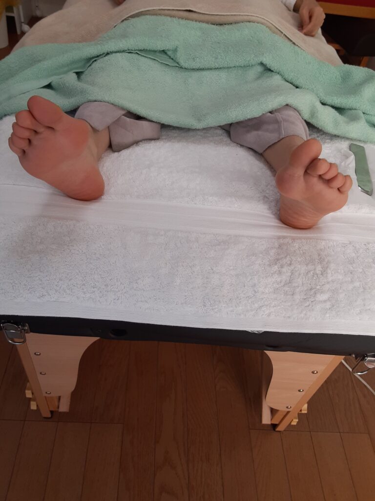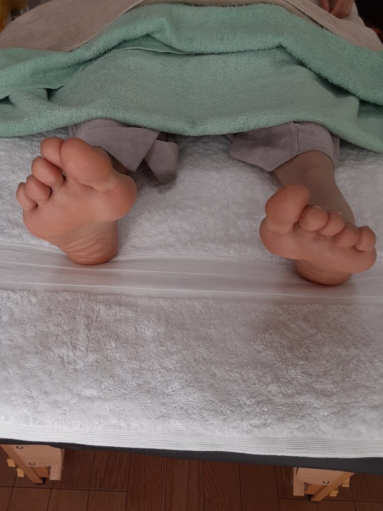 右足(向かって左)の親指が特に重なってしまっていますが施術後はまっすぐになりました。