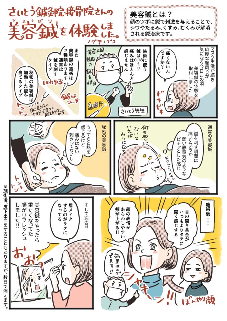 ずっと美容鍼に興味があったけど、なかなか顔に鍼をすることは怖かったということですが、当院の鍼の説明を御覧いただき思い切ってご来院いただきました。